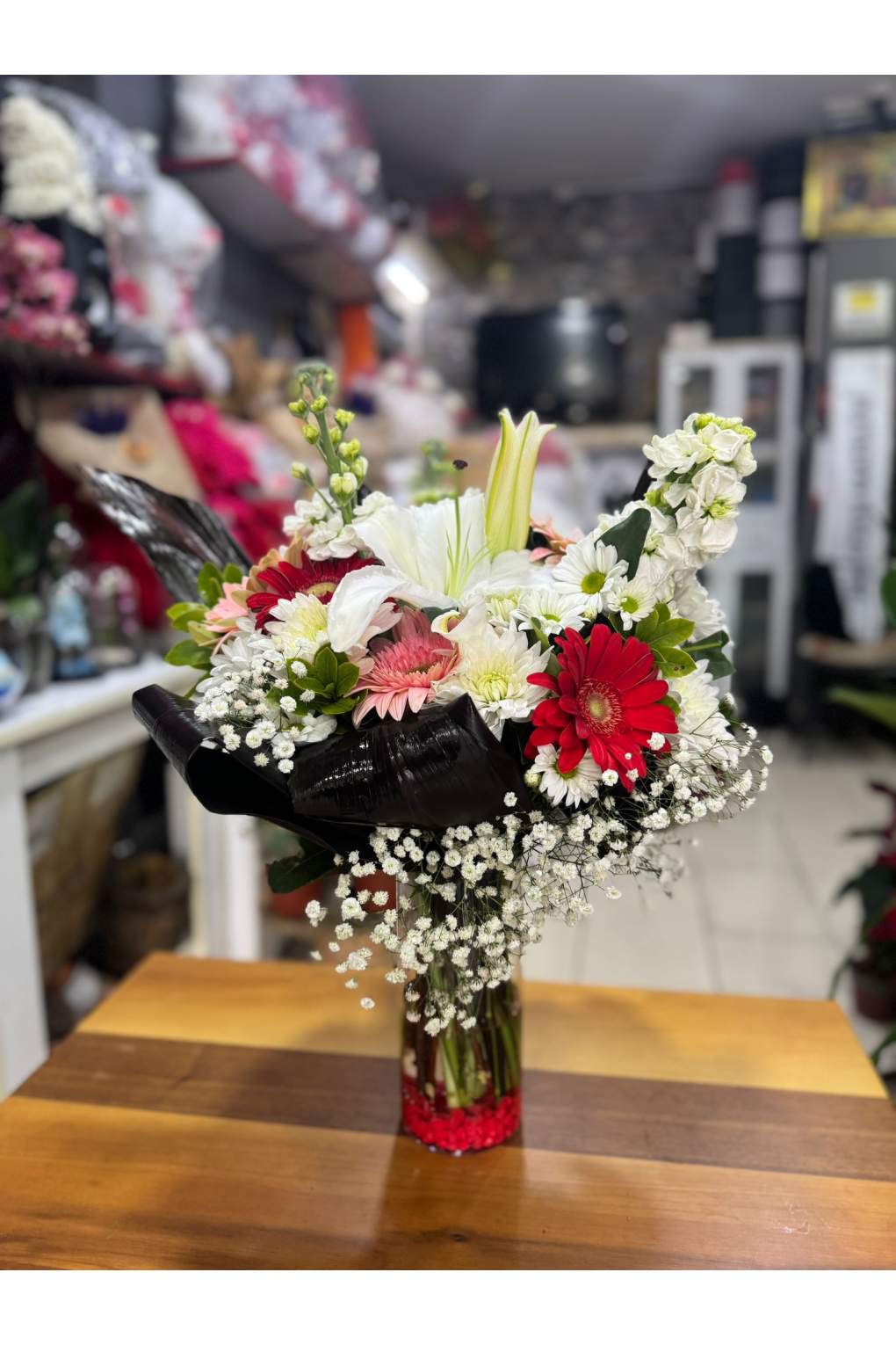 Çiçeklerimiz mevsime göre tazelik ve renk tonlarında küçük farklılıklar gösterebilir. Aranjmanı her zaman aynı stil, ölçü ve kaliteyle hazırlıyoruz; ancak doğanın birebir kopyası olmadığından görseldeki bazı çiçekler benzer alternatiflerle değiştirilebilir. Her durumda buketiniz aynı şıklıkta ve değerde hazırlanır-