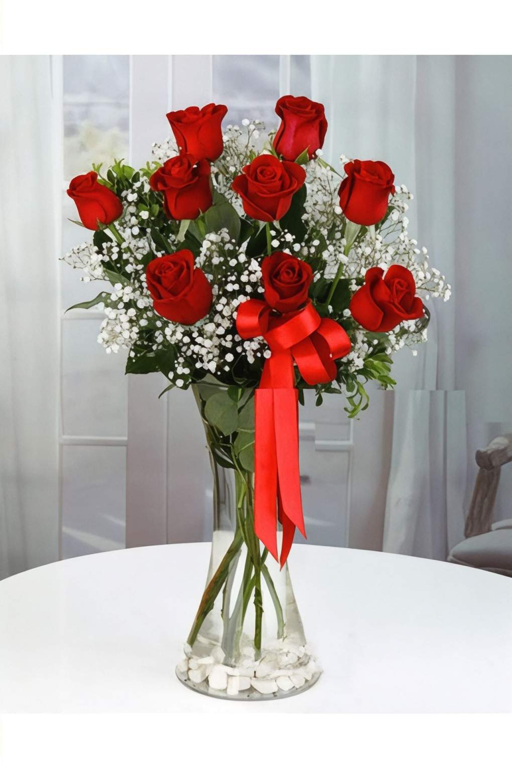 Vazoda 9 Gül (Kırmızı)