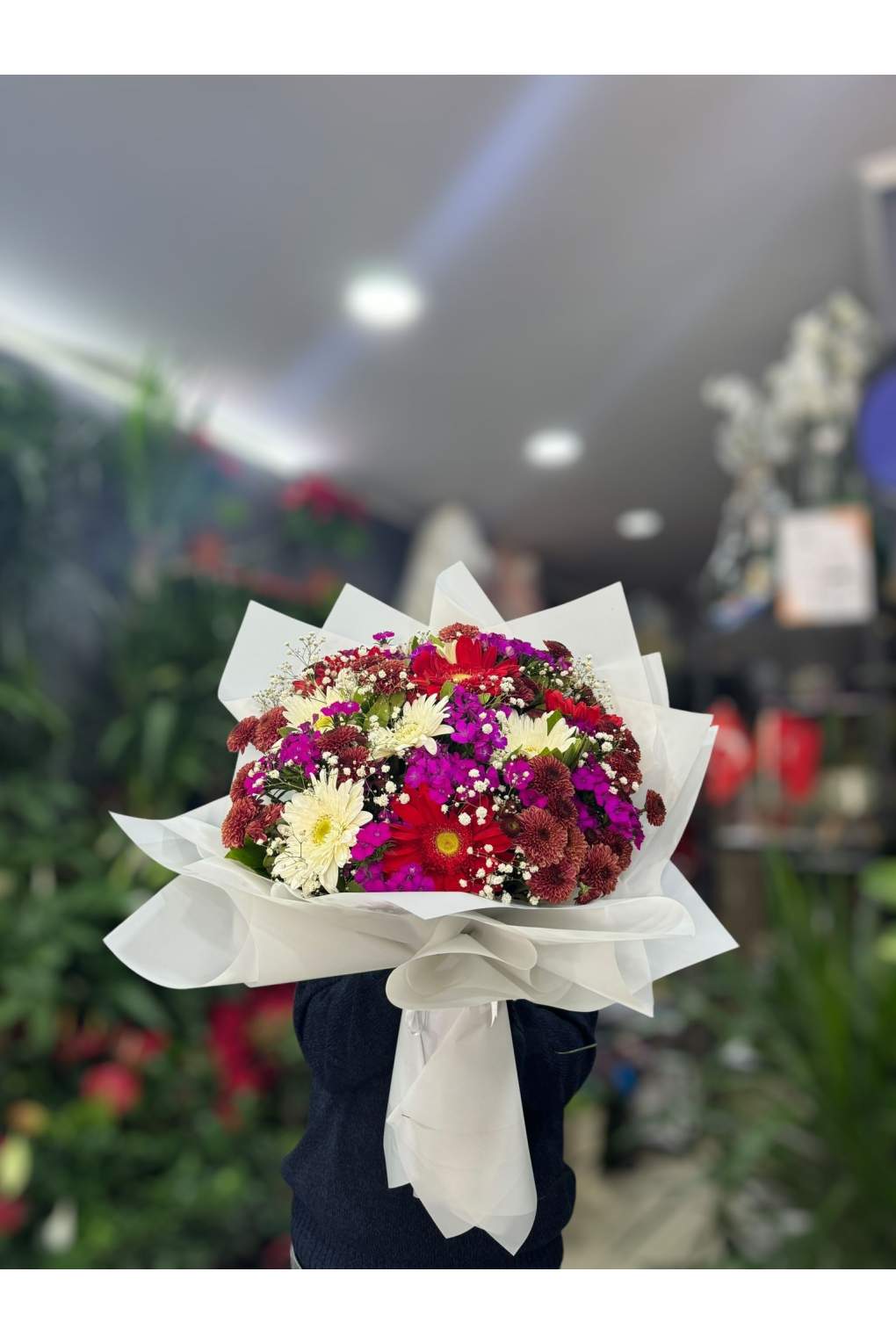 Çiçeklerimiz mevsime göre tazelik ve renk tonlarında küçük farklılıklar gösterebilir. Aranjmanı her zaman aynı stil, ölçü ve kaliteyle hazırlıyoruz; ancak doğanın birebir kopyası olmadığından görseldeki bazı çiçekler benzer alternatiflerle değiştirilebilir. Her durumda buketiniz aynı şıklıkta ve değerde hazırlanır-