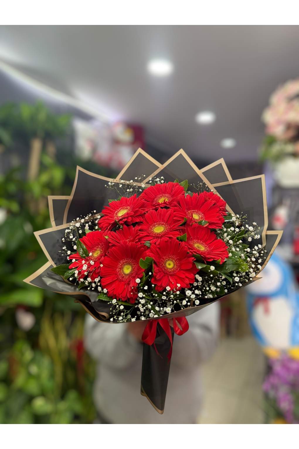 Duygularınızı ifade etmenin en canlı yoluyla tanışın! Rose Çiçek Evi’nin usta ellerinde hazırlanan bu özel buket, 10 adet en taze kırmızı gerberayı, modern ve lüks siyah-gold detaylı kağıt tasarımıyla bir araya getiriyor.