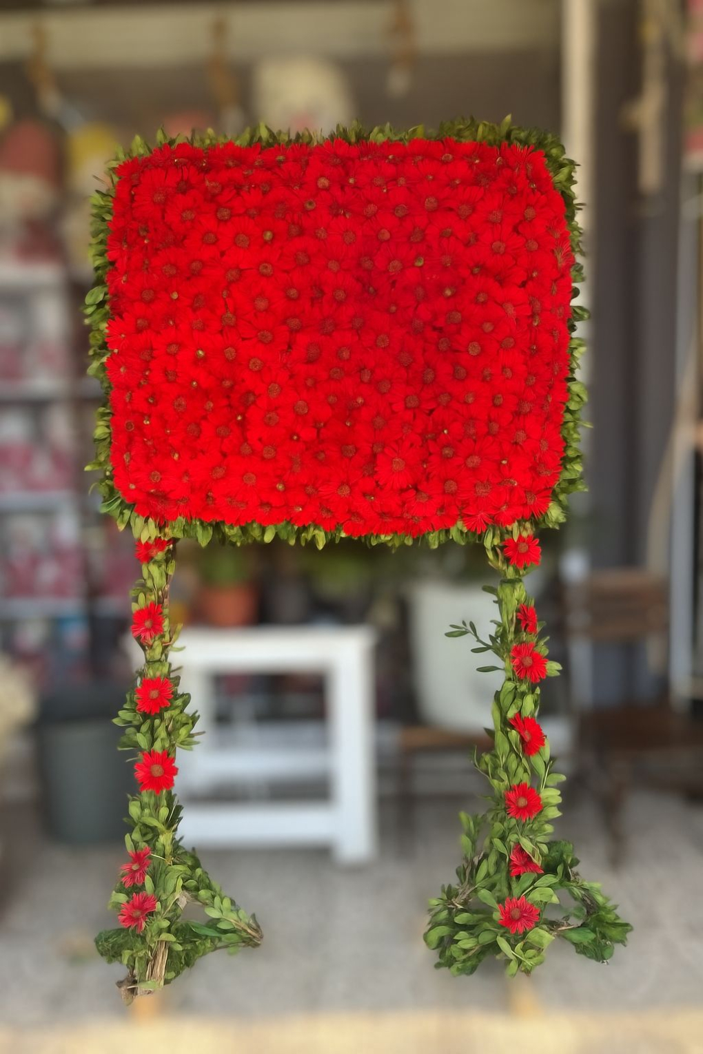 Kırmızı Beyaz Gerberalı Ufak Boy Çelenk