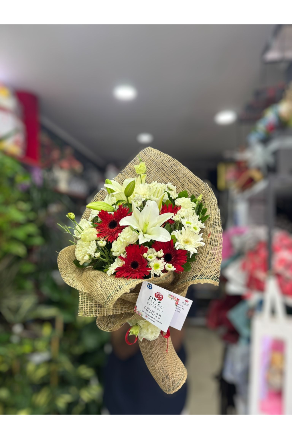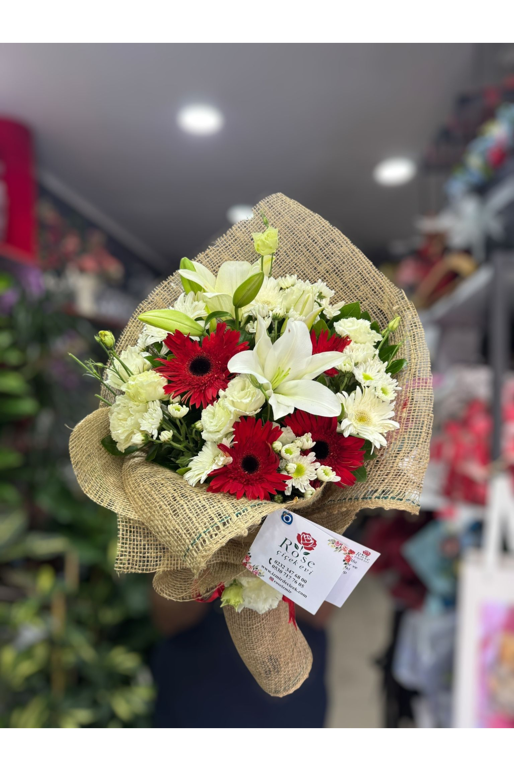 Çiçeklerimiz mevsime göre tazelik ve renk tonlarında küçük farklılıklar gösterebilir. Aranjmanı her zaman aynı stil, ölçü ve kaliteyle hazırlıyoruz; ancak doğanın birebir kopyası olmadığından görseldeki bazı çiçekler benzer alternatiflerle değiştirilebilir. Her durumda buketiniz aynı şıklıkta ve değerde hazırlanır-