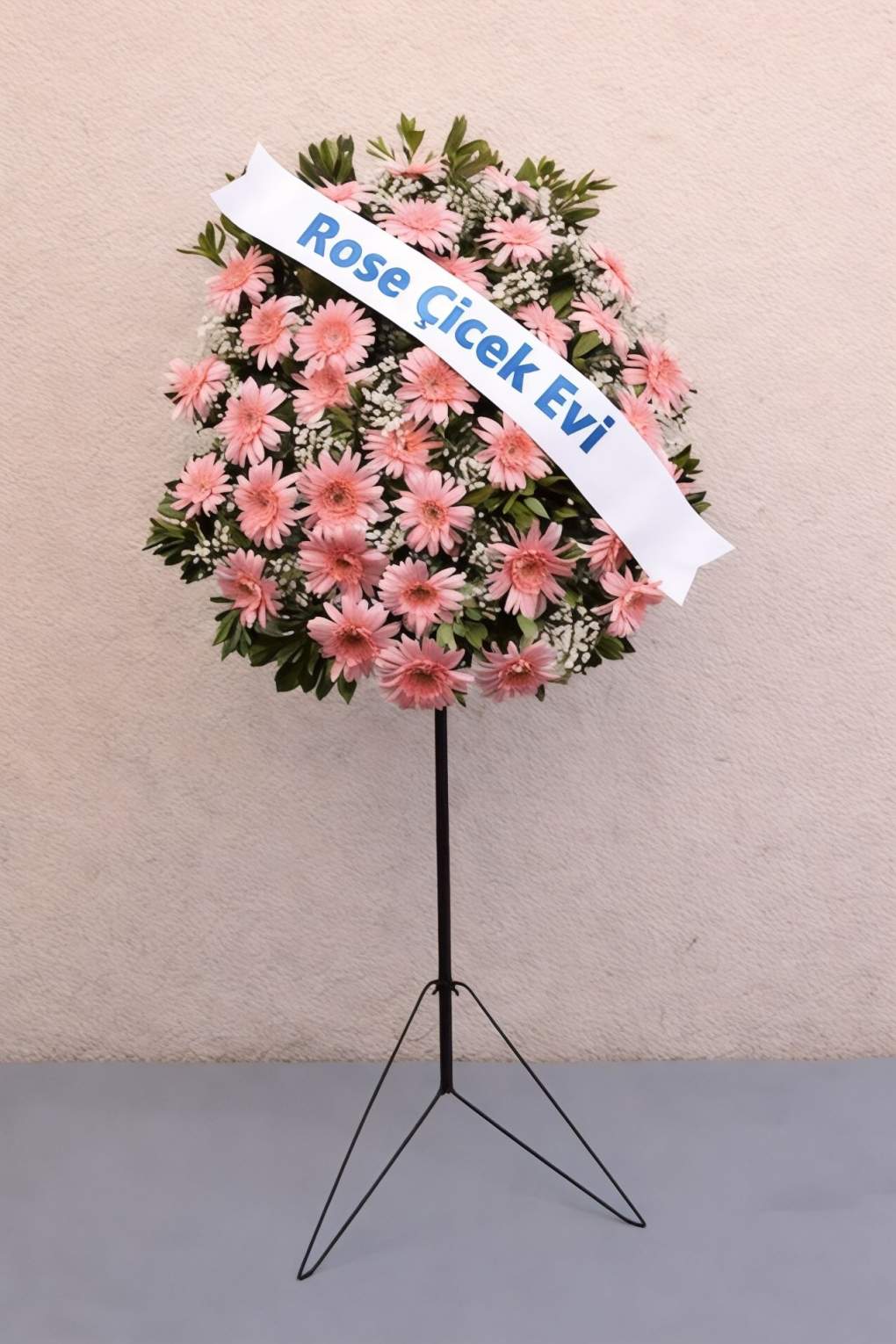 Pembe gerberalarla hazırlanan bu ferforje  zarif ve dikkat çekici görünümüyle açılış ve özel organizasyonlar için şık bir tercihtir. Yuvarlak formu ve dengeli çiçek yerleşimi sayesinde ferah ve düzenli bir duruş sunar.