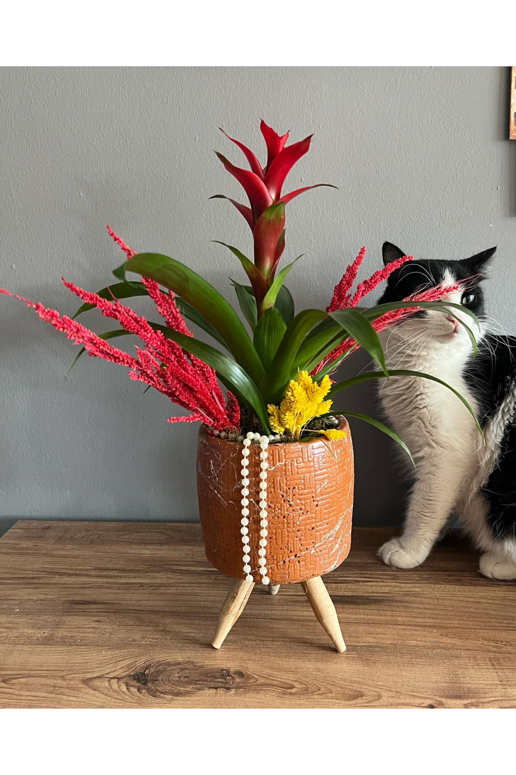 Ayaklı saksıda süslenmiş guzmanya 50-70 cm civarı