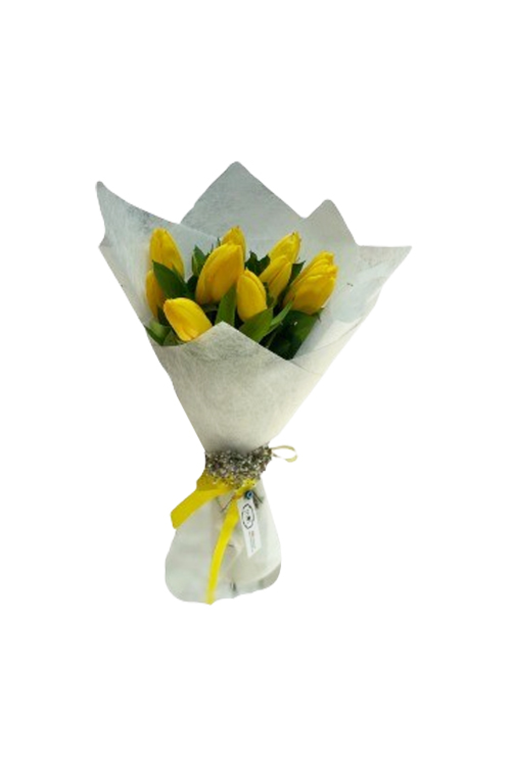 11 adet sarı laleden hazırlanmış sade ve gösterişli bir buket