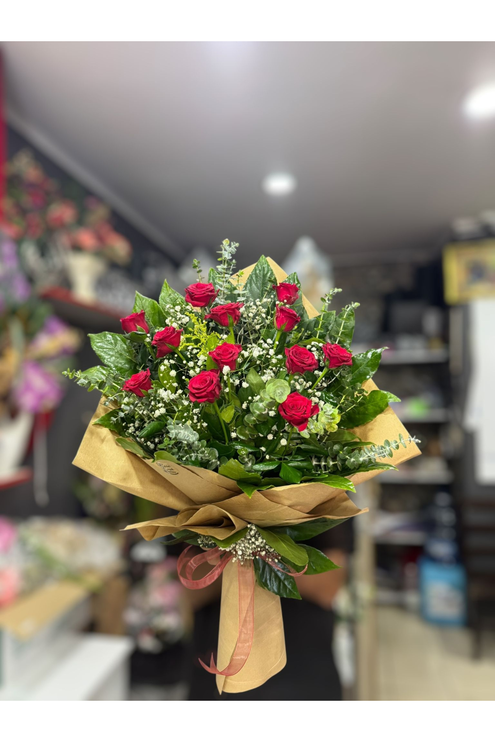 15 adet kırmızı gül ve çeşitli garnitürlerle hazırlanmıştır