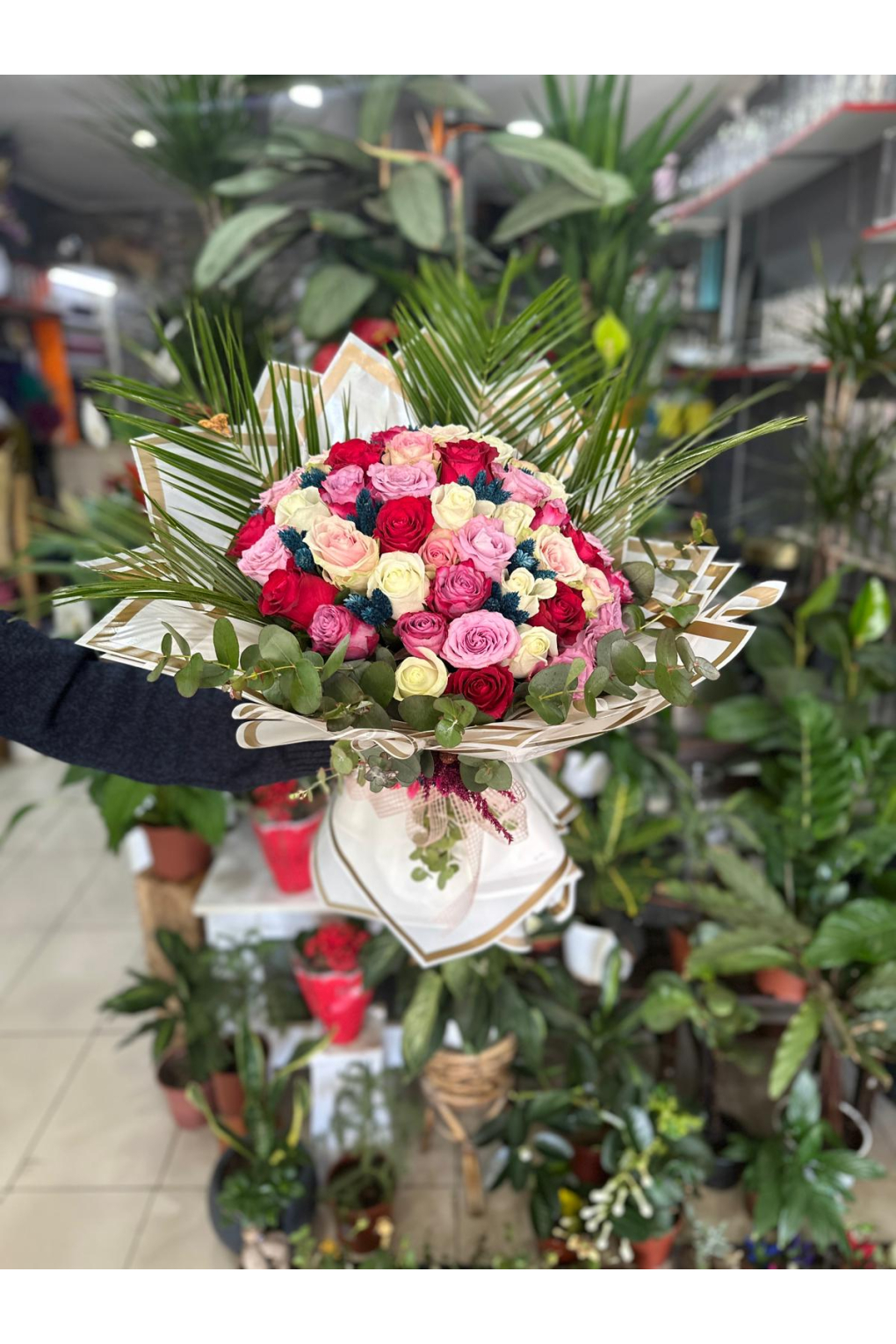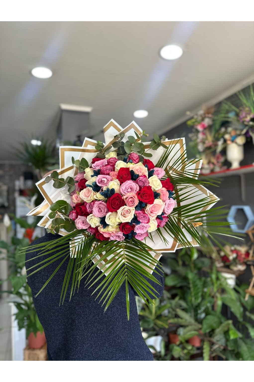 51 adet ithal ve yerli rengarenk gül modeli isteme,nikah gibi özel güllerinizde tercih edebilirsiniz