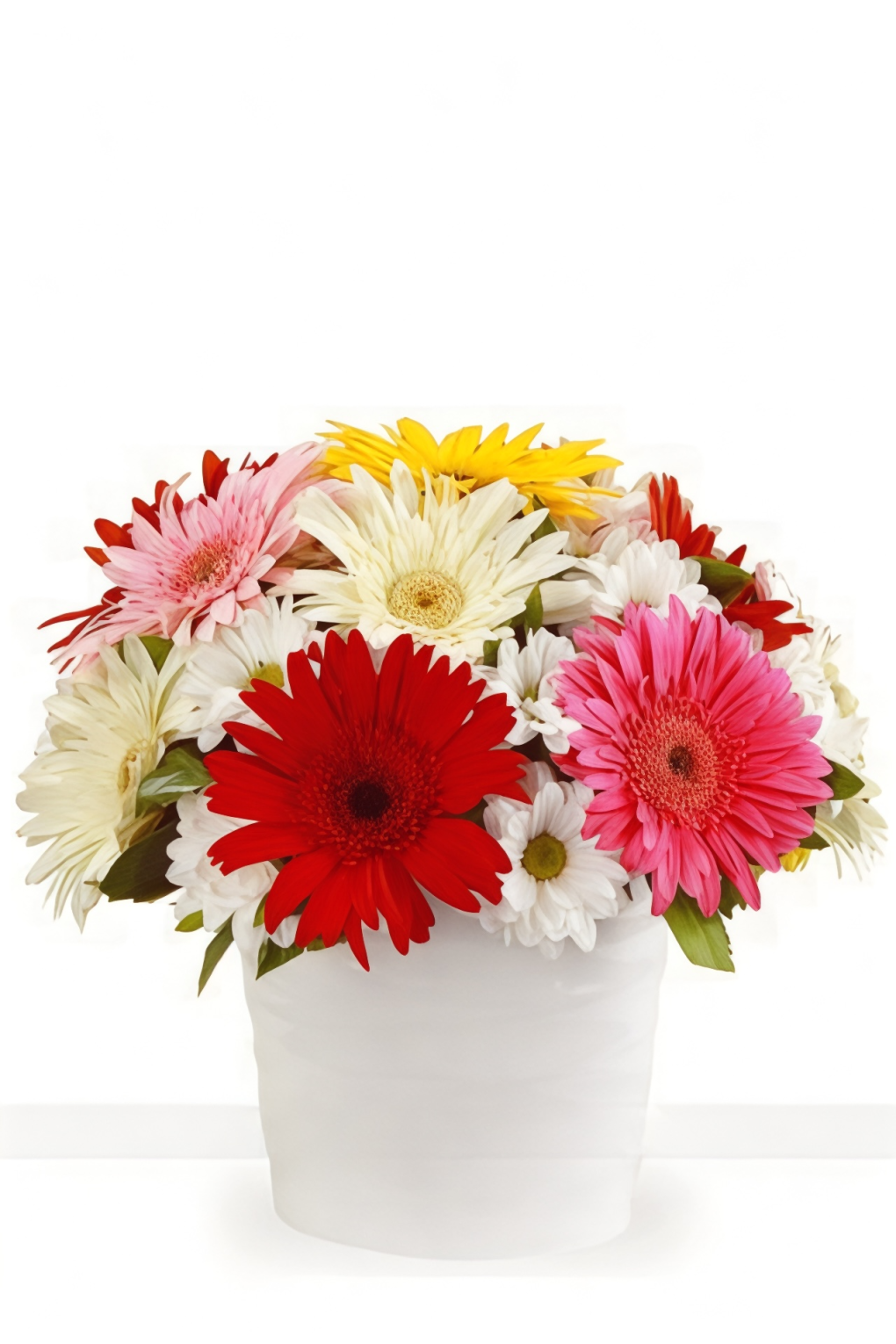 Modern beyaz seramik vazo içinde hazırlanan bu renkli tasarım; geçmiş olsun, tebrik, açılış, doğum günü ve tüm özel günler için ideal bir hediye seçeneğidir.