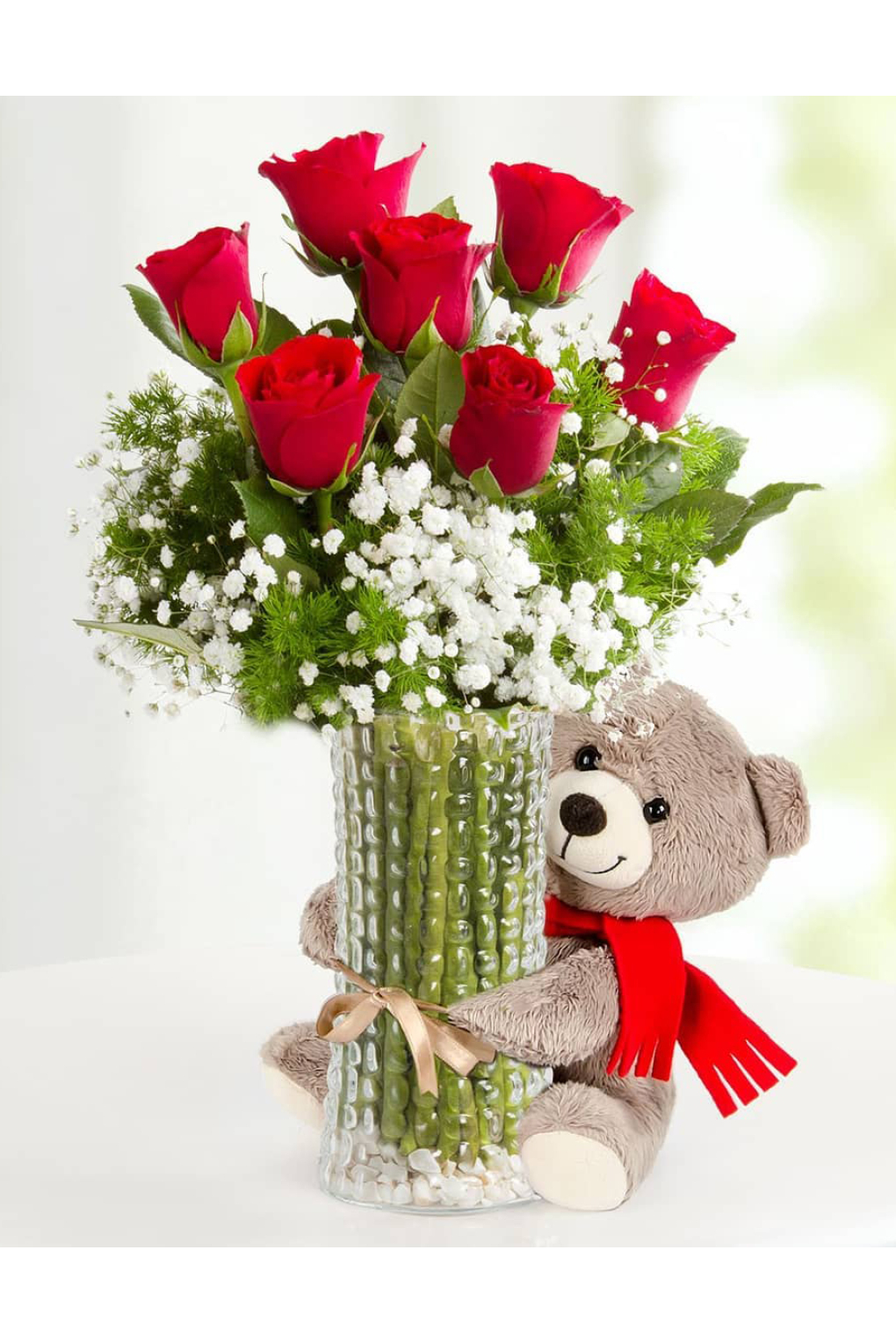 Kullanılan Diğer Ürünler : Yeşillik, Cipsofilya, Cam Vazo, Peluş Ayıcık