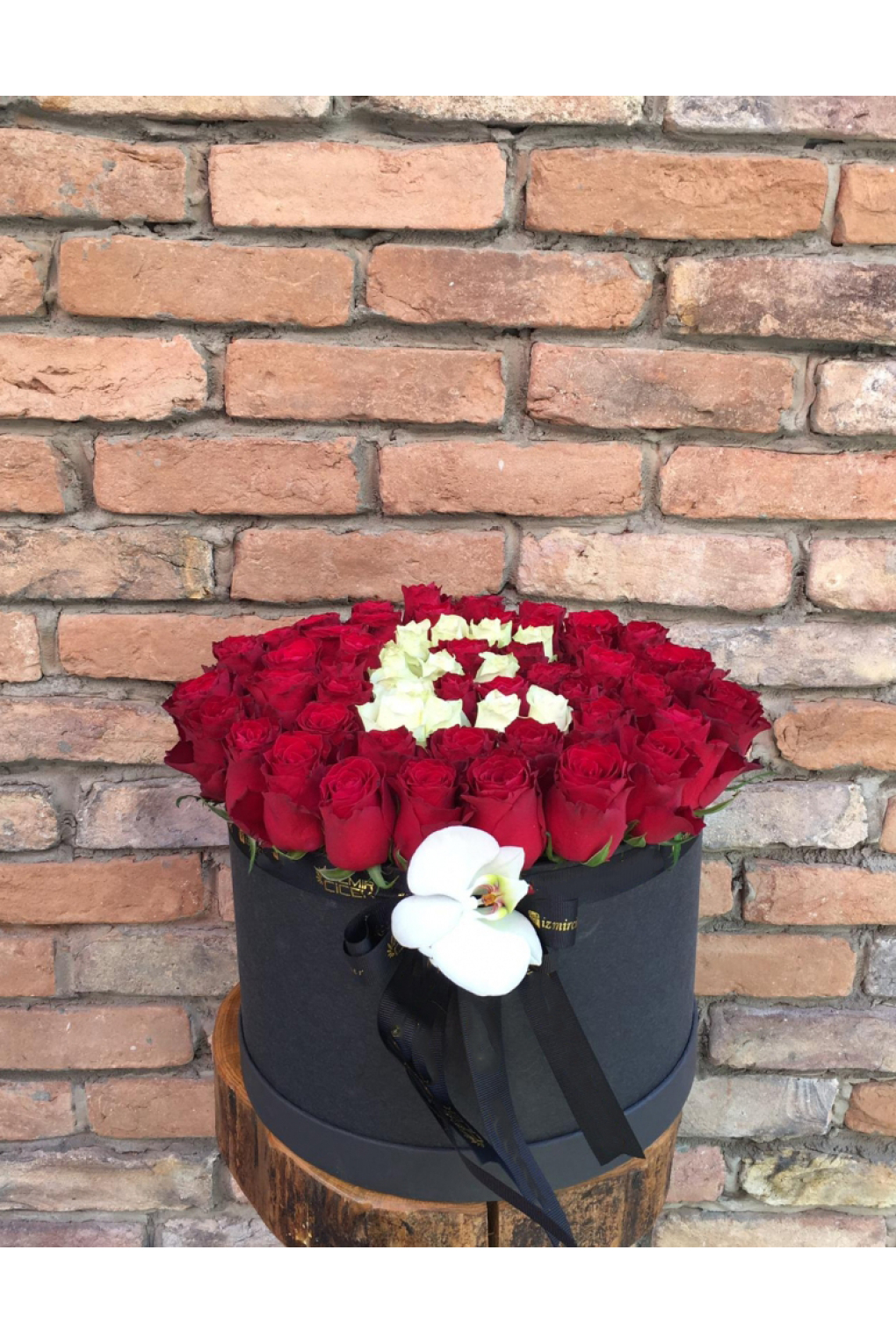 Ürünümüz mega boy kutu çiçek içerisine 55-65 adet arası ithal rhodos gül kullanılarak hazırlanmıştır.