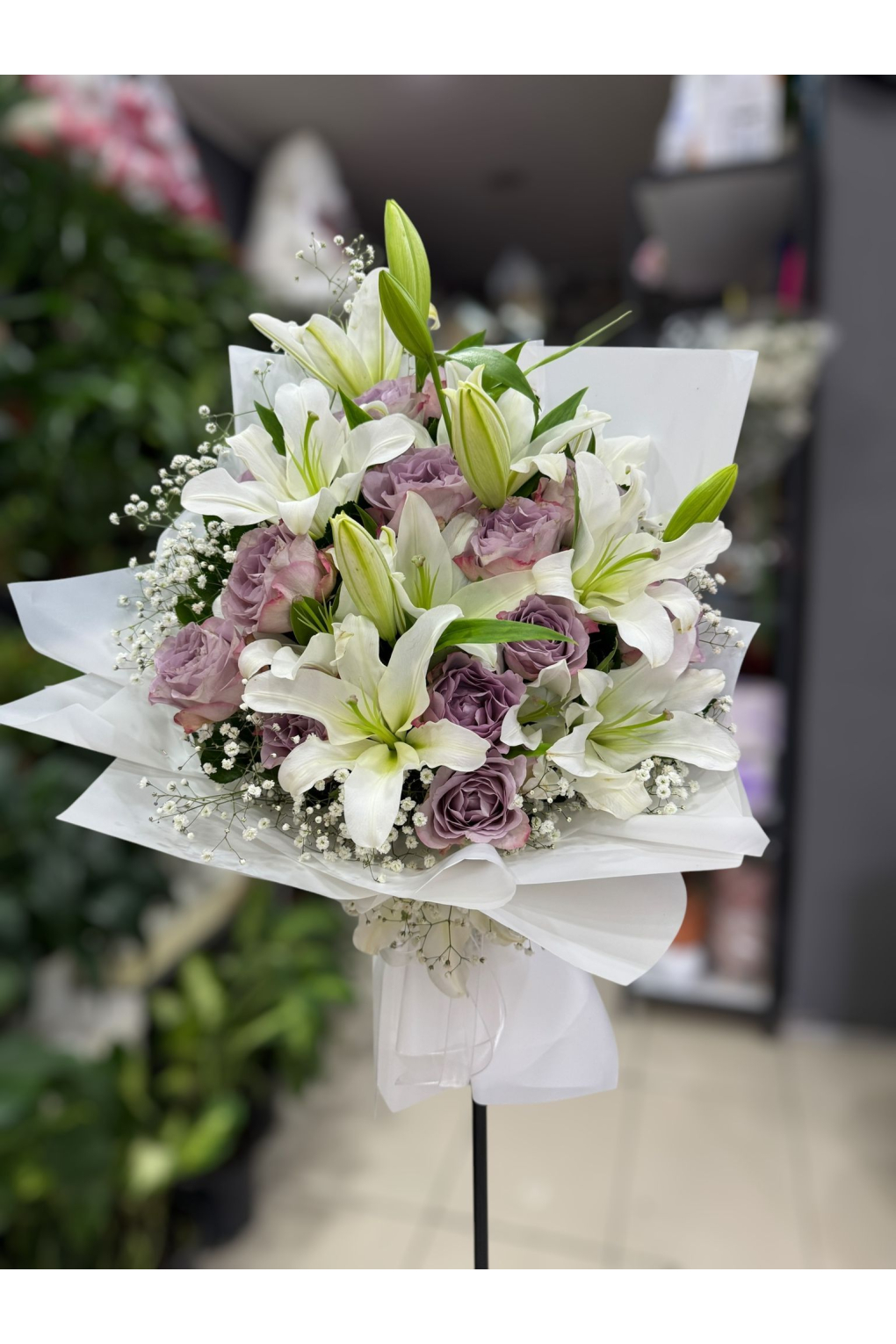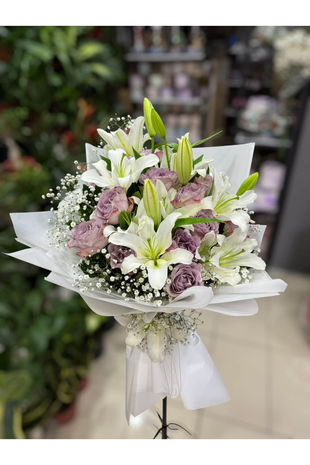 Zarafeti ve şıklığı bir arada sunan bu özel buket, ithal güllerin asil tonları ile kazablanka zambaklarının büyüleyici kokusunu buluşturuyor. İzmir’de sevdiklerinize en gösterişli ve modern çiçek tasarımlarını ulaştırmak isteyenler için ideal bir seçimdir.